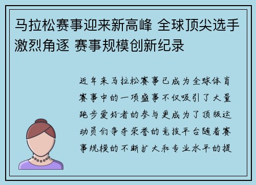 马拉松赛事迎来新高峰 全球顶尖选手激烈角逐 赛事规模创新纪录